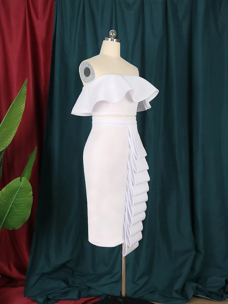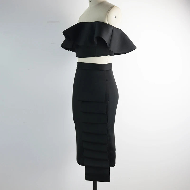 2 piece Asymmetrical Suite Ruffle Top and Bottom