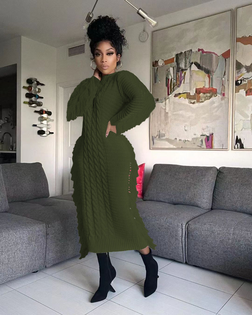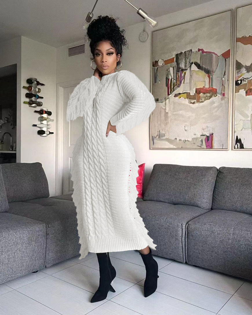 Knitted long sleeve Tassel Maxi Dress
